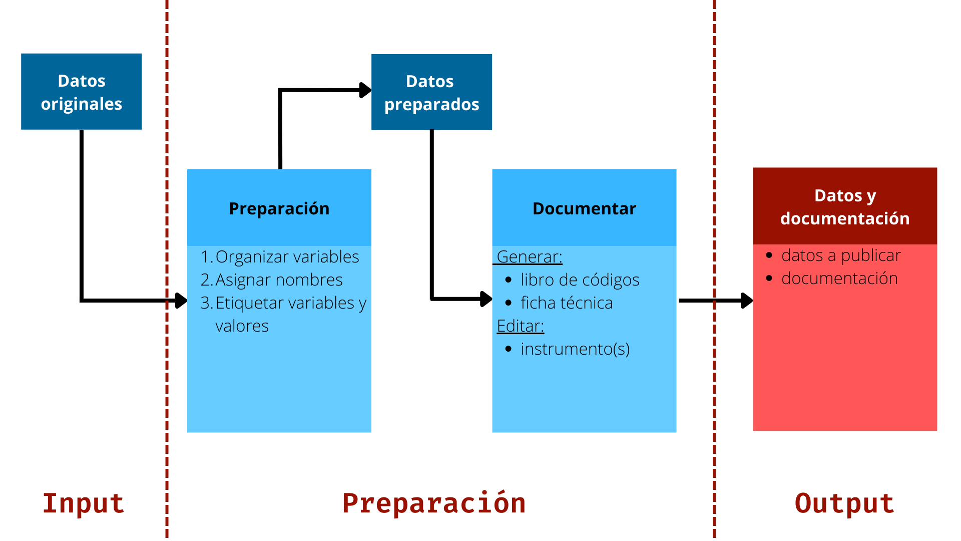 documentar: una base de datos debe estar correctamente documentada para su uso. Establecer formas de documentar (ficha técnica, libro de códigos, etc) facilitan la publicación y usabilidad de los datos por parte de investigadores externos.